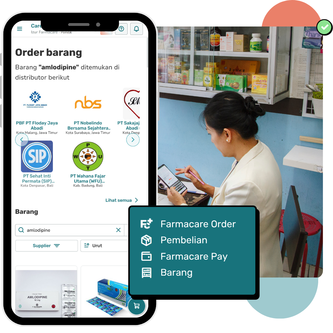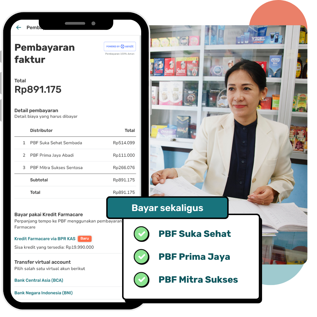 Farmacare terhubung dengan banyak sistem order PBF serta bank dan layanan keuangan berizin. Memberikanmu keleluasaan dalam mengatur finansial bisnis apotek.