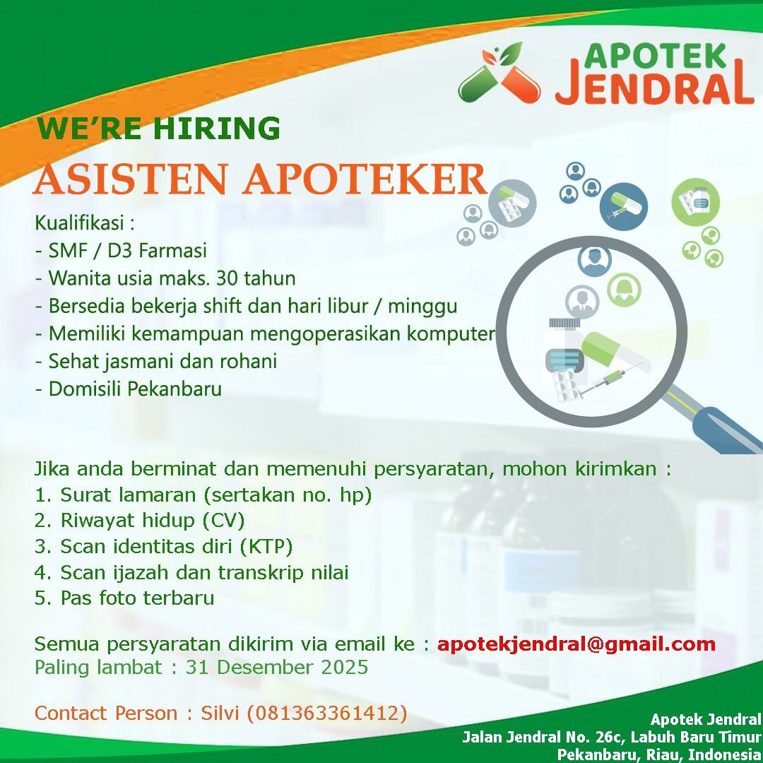 Disclaimer: Farmacare bertindak sebagai platform penyedia informasi dan tidak bertanggung jawab atas isi maupun keakuratan materi lowongan kerja yang dipasang oleh pihak ketiga. Kami mengimbau seluruh pelamar untuk selalu waspada terhadap segala bentuk penipuan yang mengatasnamakan proses rekrutmen. Ingatlah bahwa proses rekrutmen yang resmi tidak pernah memungut biaya apa pun (seperti biaya tiket, akomodasi, atau biaya admin). Selalu lakukan verifikasi mandiri sebelum memberikan data pribadi atau melakukan transaksi.