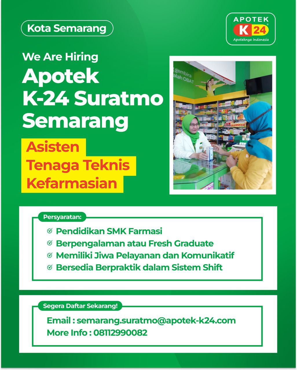 Disclaimer: Farmacare bertindak sebagai platform penyedia informasi dan tidak bertanggung jawab atas isi maupun keakuratan materi lowongan kerja yang dipasang oleh pihak ketiga. Kami mengimbau seluruh pelamar untuk selalu waspada terhadap segala bentuk penipuan yang mengatasnamakan proses rekrutmen. Ingatlah bahwa proses rekrutmen yang resmi tidak pernah memungut biaya apa pun (seperti biaya tiket, akomodasi, atau biaya admin). Selalu lakukan verifikasi mandiri sebelum memberikan data pribadi atau melakukan transaksi.