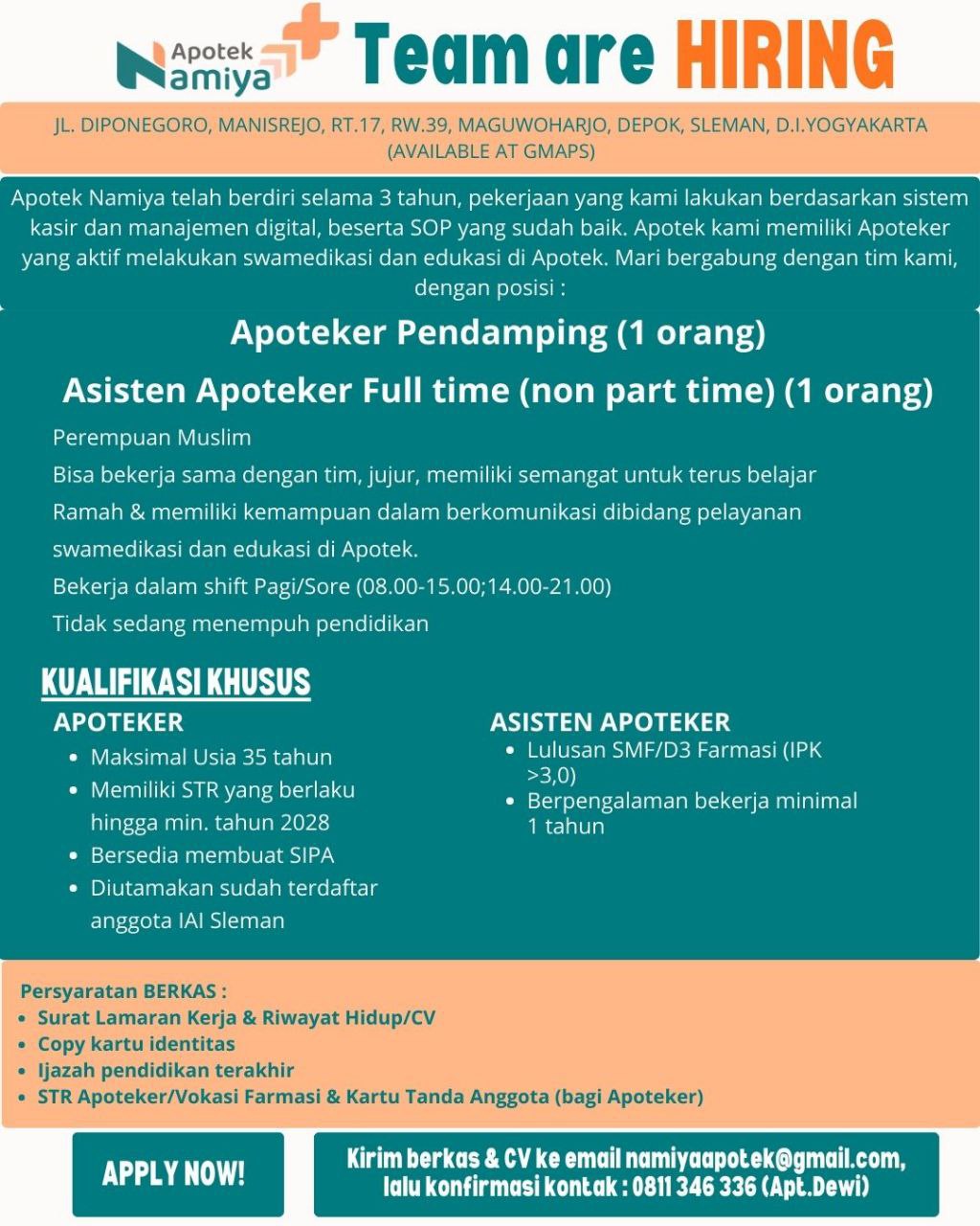 Disclaimer: Farmacare bertindak sebagai platform penyedia informasi dan tidak bertanggung jawab atas isi maupun keakuratan materi lowongan kerja yang dipasang oleh pihak ketiga. Kami mengimbau seluruh pelamar untuk selalu waspada terhadap segala bentuk penipuan yang mengatasnamakan proses rekrutmen. Ingatlah bahwa proses rekrutmen yang resmi tidak pernah memungut biaya apa pun (seperti biaya tiket, akomodasi, atau biaya admin). Selalu lakukan verifikasi mandiri sebelum memberikan data pribadi atau melakukan transaksi.