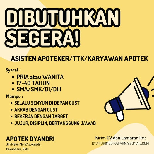 Disclaimer: Farmacare bertindak sebagai platform penyedia informasi dan tidak bertanggung jawab atas isi maupun keakuratan materi lowongan kerja yang dipasang oleh pihak ketiga. Kami mengimbau seluruh pelamar untuk selalu waspada terhadap segala bentuk penipuan yang mengatasnamakan proses rekrutmen. Ingatlah bahwa proses rekrutmen yang resmi tidak pernah memungut biaya apa pun (seperti biaya tiket, akomodasi, atau biaya admin). Selalu lakukan verifikasi mandiri sebelum memberikan data pribadi atau melakukan transaksi.
