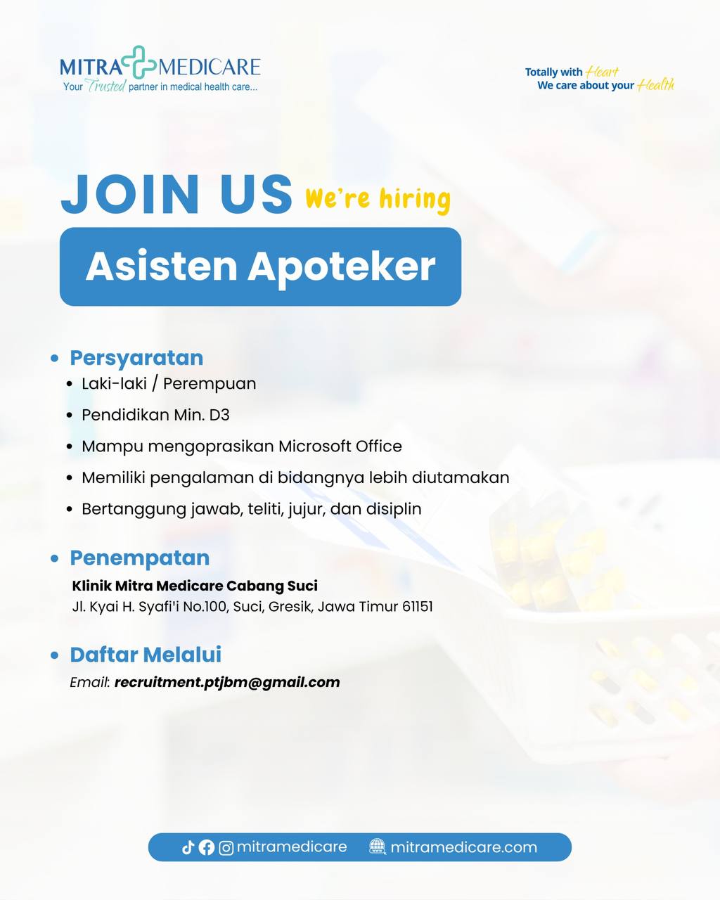 Disclaimer: Farmacare bertindak sebagai platform penyedia informasi dan tidak bertanggung jawab atas isi maupun keakuratan materi lowongan kerja yang dipasang oleh pihak ketiga. Kami mengimbau seluruh pelamar untuk selalu waspada terhadap segala bentuk penipuan yang mengatasnamakan proses rekrutmen. Ingatlah bahwa proses rekrutmen yang resmi tidak pernah memungut biaya apa pun (seperti biaya tiket, akomodasi, atau biaya admin). Selalu lakukan verifikasi mandiri sebelum memberikan data pribadi atau melakukan transaksi.