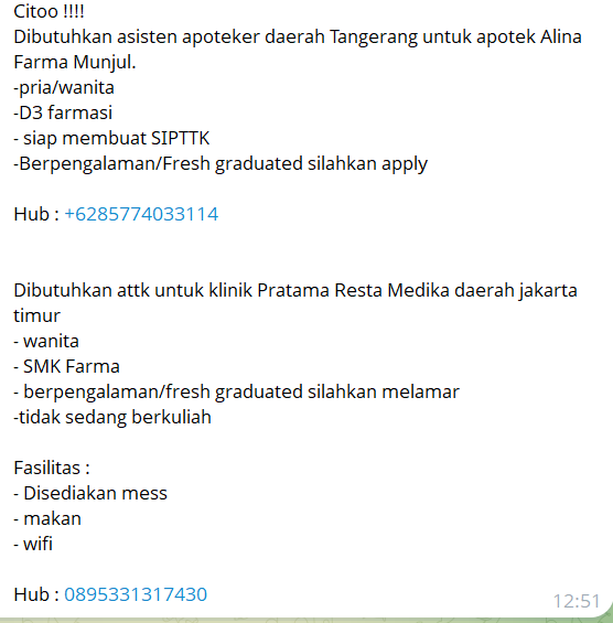 Disclaimer: Farmacare bertindak sebagai platform penyedia informasi dan tidak bertanggung jawab atas isi maupun keakuratan materi lowongan kerja yang dipasang oleh pihak ketiga. Kami mengimbau seluruh pelamar untuk selalu waspada terhadap segala bentuk penipuan yang mengatasnamakan proses rekrutmen. Ingatlah bahwa proses rekrutmen yang resmi tidak pernah memungut biaya apa pun (seperti biaya tiket, akomodasi, atau biaya admin). Selalu lakukan verifikasi mandiri sebelum memberikan data pribadi atau melakukan transaksi.