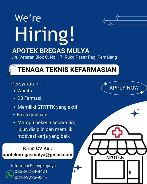 Disclaimer: Farmacare bertindak sebagai platform penyedia informasi dan tidak bertanggung jawab atas isi maupun keakuratan materi lowongan kerja yang dipasang oleh pihak ketiga. Kami mengimbau seluruh pelamar untuk selalu waspada terhadap segala bentuk penipuan yang mengatasnamakan proses rekrutmen. Ingatlah bahwa proses rekrutmen yang resmi tidak pernah memungut biaya apa pun (seperti biaya tiket, akomodasi, atau biaya admin). Selalu lakukan verifikasi mandiri sebelum memberikan data pribadi atau melakukan transaksi.