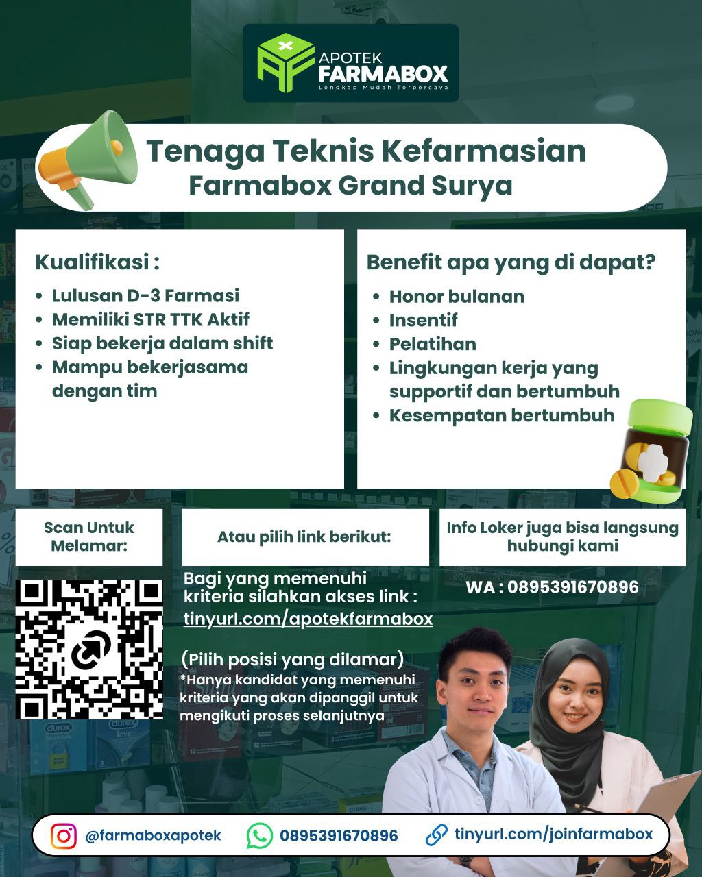 Disclaimer: Farmacare bertindak sebagai platform penyedia informasi dan tidak bertanggung jawab atas isi maupun keakuratan materi lowongan kerja yang dipasang oleh pihak ketiga. Kami mengimbau seluruh pelamar untuk selalu waspada terhadap segala bentuk penipuan yang mengatasnamakan proses rekrutmen. Ingatlah bahwa proses rekrutmen yang resmi tidak pernah memungut biaya apa pun (seperti biaya tiket, akomodasi, atau biaya admin). Selalu lakukan verifikasi mandiri sebelum memberikan data pribadi atau melakukan transaksi.