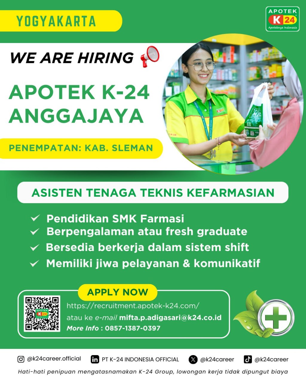 Disclaimer: Farmacare bertindak sebagai platform penyedia informasi dan tidak bertanggung jawab atas isi maupun keakuratan materi lowongan kerja yang dipasang oleh pihak ketiga. Kami mengimbau seluruh pelamar untuk selalu waspada terhadap segala bentuk penipuan yang mengatasnamakan proses rekrutmen. Ingatlah bahwa proses rekrutmen yang resmi tidak pernah memungut biaya apa pun (seperti biaya tiket, akomodasi, atau biaya admin). Selalu lakukan verifikasi mandiri sebelum memberikan data pribadi atau melakukan transaksi.