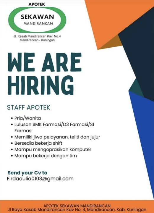 Disclaimer: Farmacare bertindak sebagai platform penyedia informasi dan tidak bertanggung jawab atas isi maupun keakuratan materi lowongan kerja yang dipasang oleh pihak ketiga. Kami mengimbau seluruh pelamar untuk selalu waspada terhadap segala bentuk penipuan yang mengatasnamakan proses rekrutmen. Ingatlah bahwa proses rekrutmen yang resmi tidak pernah memungut biaya apa pun (seperti biaya tiket, akomodasi, atau biaya admin). Selalu lakukan verifikasi mandiri sebelum memberikan data pribadi atau melakukan transaksi.