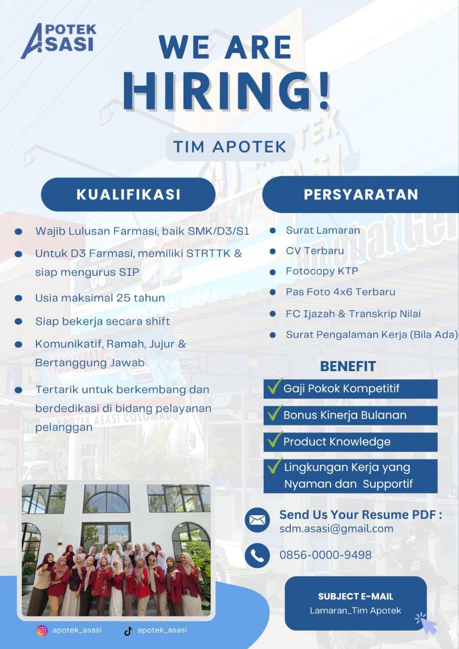 Disclaimer: Farmacare bertindak sebagai platform penyedia informasi dan tidak bertanggung jawab atas isi maupun keakuratan materi lowongan kerja yang dipasang oleh pihak ketiga. Kami mengimbau seluruh pelamar untuk selalu waspada terhadap segala bentuk penipuan yang mengatasnamakan proses rekrutmen. Ingatlah bahwa proses rekrutmen yang resmi tidak pernah memungut biaya apa pun (seperti biaya tiket, akomodasi, atau biaya admin). Selalu lakukan verifikasi mandiri sebelum memberikan data pribadi atau melakukan transaksi.