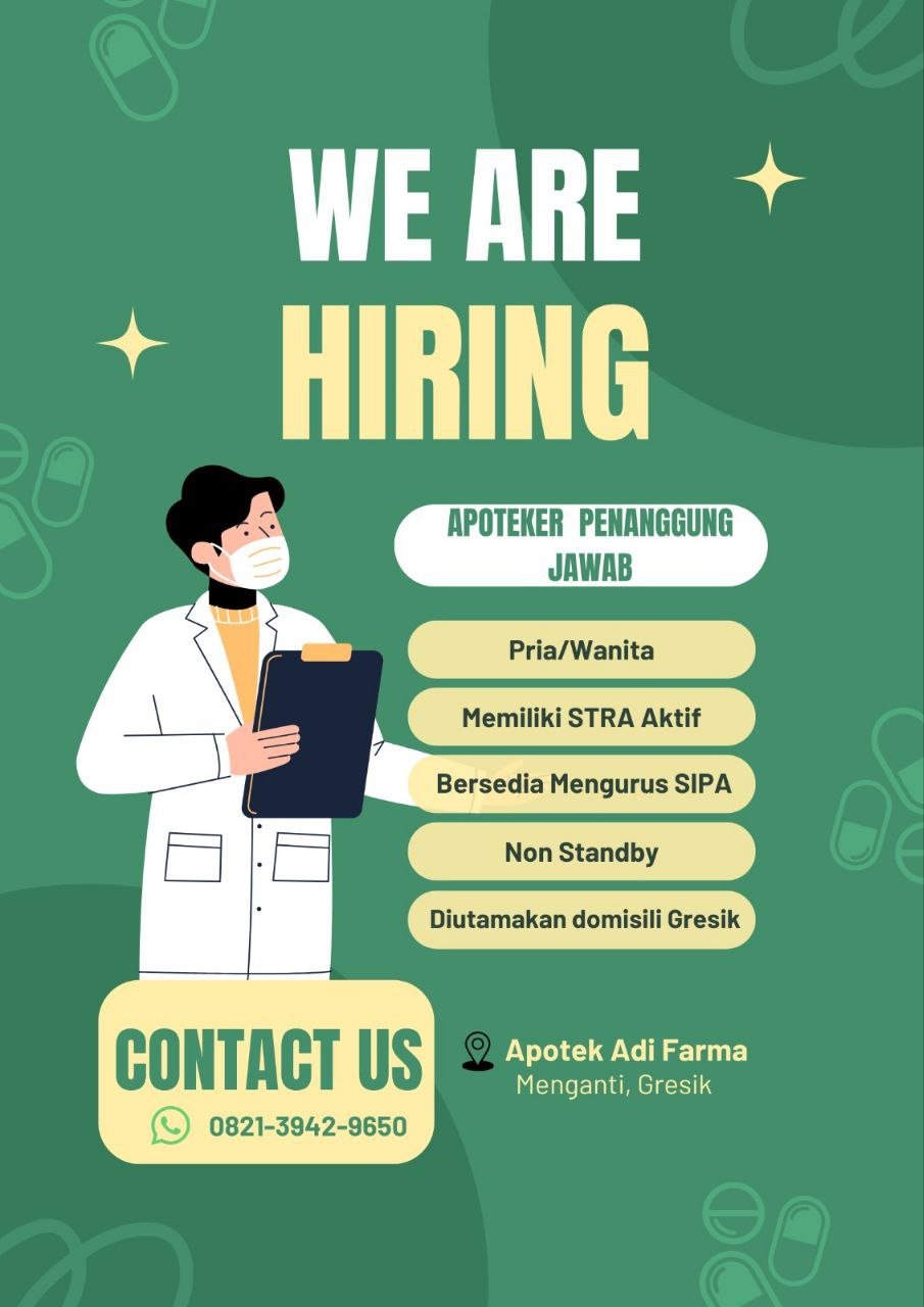 Disclaimer: Farmacare bertindak sebagai platform penyedia informasi dan tidak bertanggung jawab atas isi maupun keakuratan materi lowongan kerja yang dipasang oleh pihak ketiga. Kami mengimbau seluruh pelamar untuk selalu waspada terhadap segala bentuk penipuan yang mengatasnamakan proses rekrutmen. Ingatlah bahwa proses rekrutmen yang resmi tidak pernah memungut biaya apa pun (seperti biaya tiket, akomodasi, atau biaya admin). Selalu lakukan verifikasi mandiri sebelum memberikan data pribadi atau melakukan transaksi.
