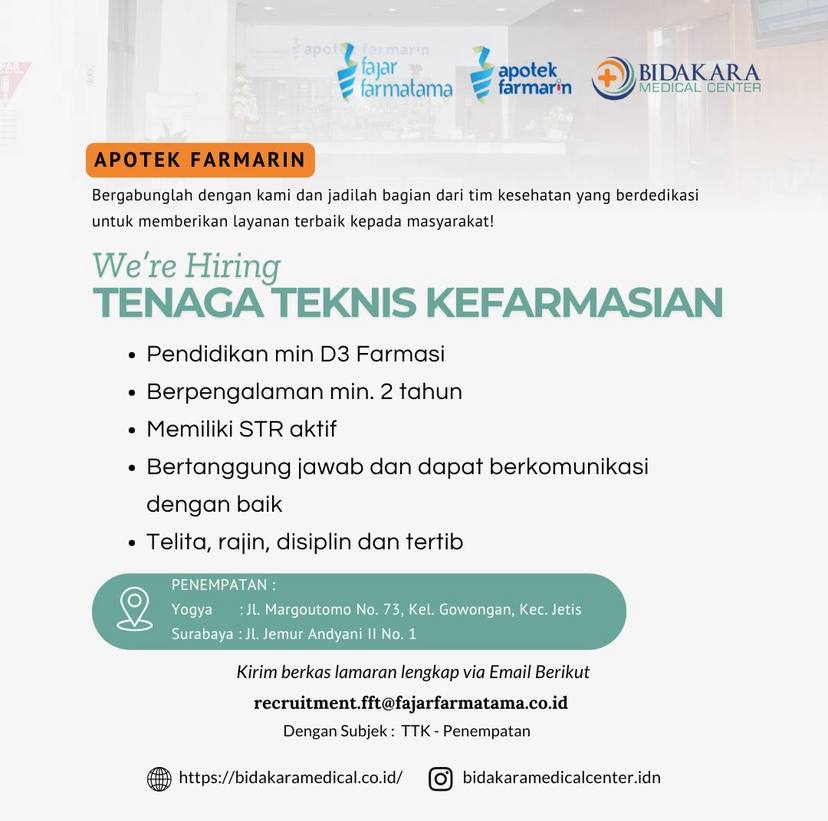 Disclaimer: Farmacare bertindak sebagai platform penyedia informasi dan tidak bertanggung jawab atas isi maupun keakuratan materi lowongan kerja yang dipasang oleh pihak ketiga. Kami mengimbau seluruh pelamar untuk selalu waspada terhadap segala bentuk penipuan yang mengatasnamakan proses rekrutmen. Ingatlah bahwa proses rekrutmen yang resmi tidak pernah memungut biaya apa pun (seperti biaya tiket, akomodasi, atau biaya admin). Selalu lakukan verifikasi mandiri sebelum memberikan data pribadi atau melakukan transaksi.
