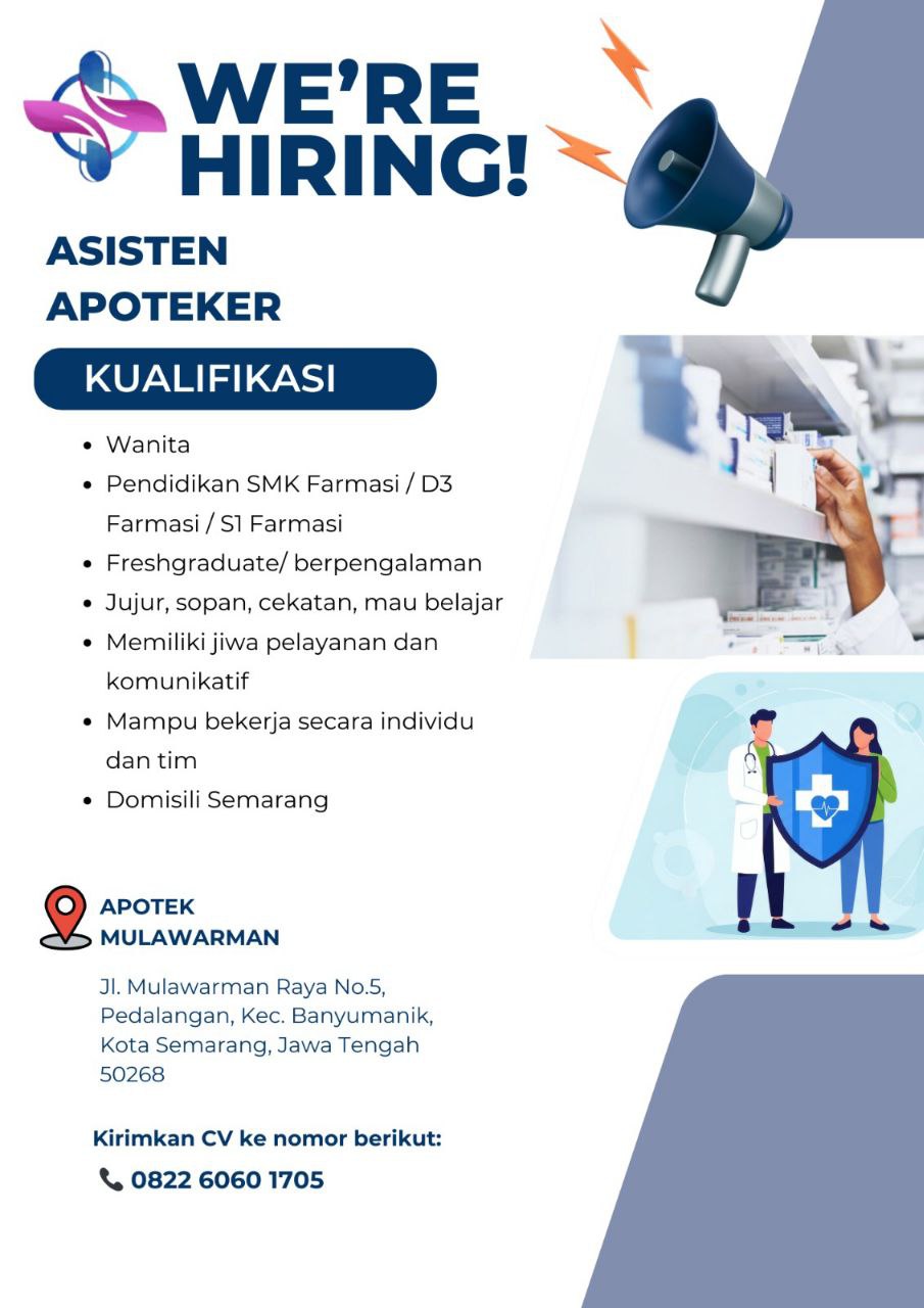 Disclaimer: Farmacare bertindak sebagai platform penyedia informasi dan tidak bertanggung jawab atas isi maupun keakuratan materi lowongan kerja yang dipasang oleh pihak ketiga. Kami mengimbau seluruh pelamar untuk selalu waspada terhadap segala bentuk penipuan yang mengatasnamakan proses rekrutmen. Ingatlah bahwa proses rekrutmen yang resmi tidak pernah memungut biaya apa pun (seperti biaya tiket, akomodasi, atau biaya admin). Selalu lakukan verifikasi mandiri sebelum memberikan data pribadi atau melakukan transaksi.