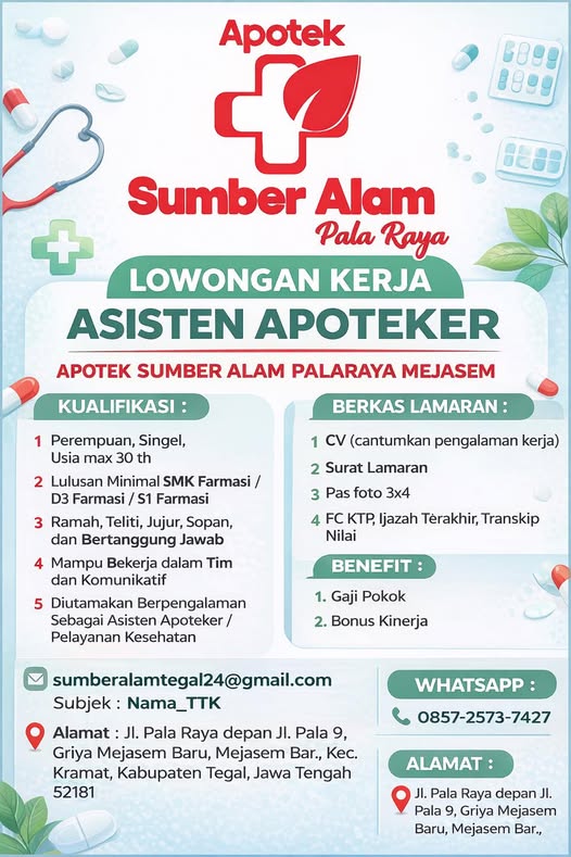 Disclaimer: Farmacare bertindak sebagai platform penyedia informasi dan tidak bertanggung jawab atas isi maupun keakuratan materi lowongan kerja yang dipasang oleh pihak ketiga. Kami mengimbau seluruh pelamar untuk selalu waspada terhadap segala bentuk penipuan yang mengatasnamakan proses rekrutmen. Ingatlah bahwa proses rekrutmen yang resmi tidak pernah memungut biaya apa pun (seperti biaya tiket, akomodasi, atau biaya admin). Selalu lakukan verifikasi mandiri sebelum memberikan data pribadi atau melakukan transaksi.