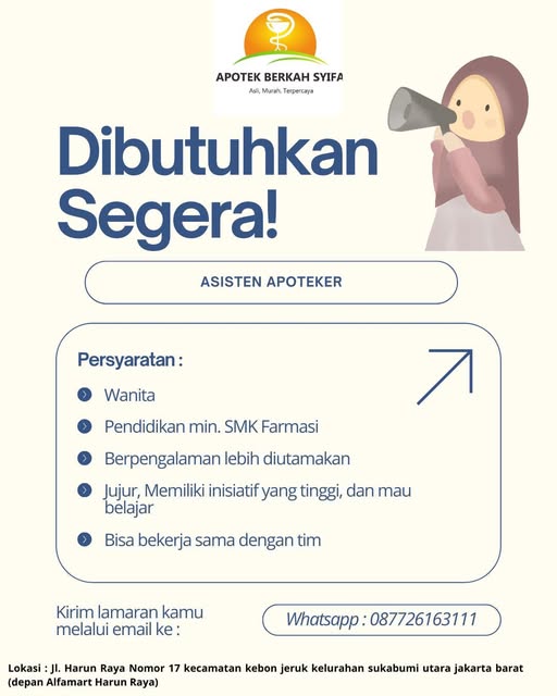 Disclaimer: Farmacare bertindak sebagai platform penyedia informasi dan tidak bertanggung jawab atas isi maupun keakuratan materi lowongan kerja yang dipasang oleh pihak ketiga. Kami mengimbau seluruh pelamar untuk selalu waspada terhadap segala bentuk penipuan yang mengatasnamakan proses rekrutmen. Ingatlah bahwa proses rekrutmen yang resmi tidak pernah memungut biaya apa pun (seperti biaya tiket, akomodasi, atau biaya admin). Selalu lakukan verifikasi mandiri sebelum memberikan data pribadi atau melakukan transaksi.
