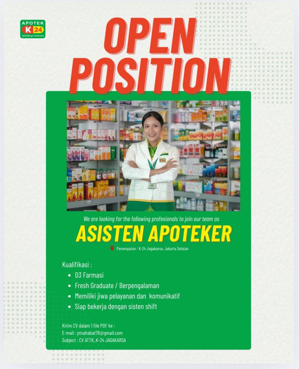 Disclaimer: Farmacare bertindak sebagai platform penyedia informasi dan tidak bertanggung jawab atas isi maupun keakuratan materi lowongan kerja yang dipasang oleh pihak ketiga. Kami mengimbau seluruh pelamar untuk selalu waspada terhadap segala bentuk penipuan yang mengatasnamakan proses rekrutmen. Ingatlah bahwa proses rekrutmen yang resmi tidak pernah memungut biaya apa pun (seperti biaya tiket, akomodasi, atau biaya admin). Selalu lakukan verifikasi mandiri sebelum memberikan data pribadi atau melakukan transaksi.