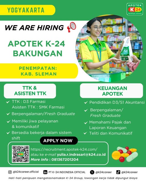 Disclaimer: Farmacare bertindak sebagai platform penyedia informasi dan tidak bertanggung jawab atas isi maupun keakuratan materi lowongan kerja yang dipasang oleh pihak ketiga. Kami mengimbau seluruh pelamar untuk selalu waspada terhadap segala bentuk penipuan yang mengatasnamakan proses rekrutmen. Ingatlah bahwa proses rekrutmen yang resmi tidak pernah memungut biaya apa pun (seperti biaya tiket, akomodasi, atau biaya admin). Selalu lakukan verifikasi mandiri sebelum memberikan data pribadi atau melakukan transaksi.