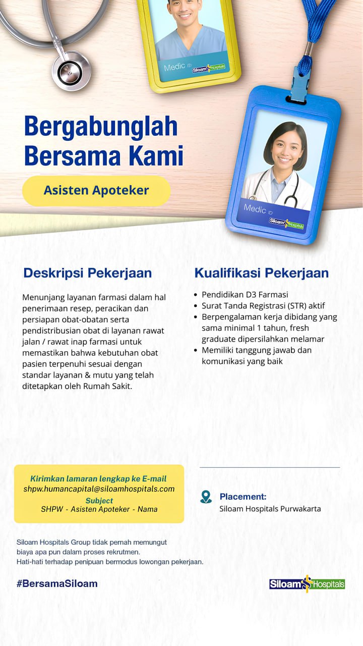 Disclaimer: Farmacare bertindak sebagai platform penyedia informasi dan tidak bertanggung jawab atas isi maupun keakuratan materi lowongan kerja yang dipasang oleh pihak ketiga. Kami mengimbau seluruh pelamar untuk selalu waspada terhadap segala bentuk penipuan yang mengatasnamakan proses rekrutmen. Ingatlah bahwa proses rekrutmen yang resmi tidak pernah memungut biaya apa pun (seperti biaya tiket, akomodasi, atau biaya admin). Selalu lakukan verifikasi mandiri sebelum memberikan data pribadi atau melakukan transaksi.