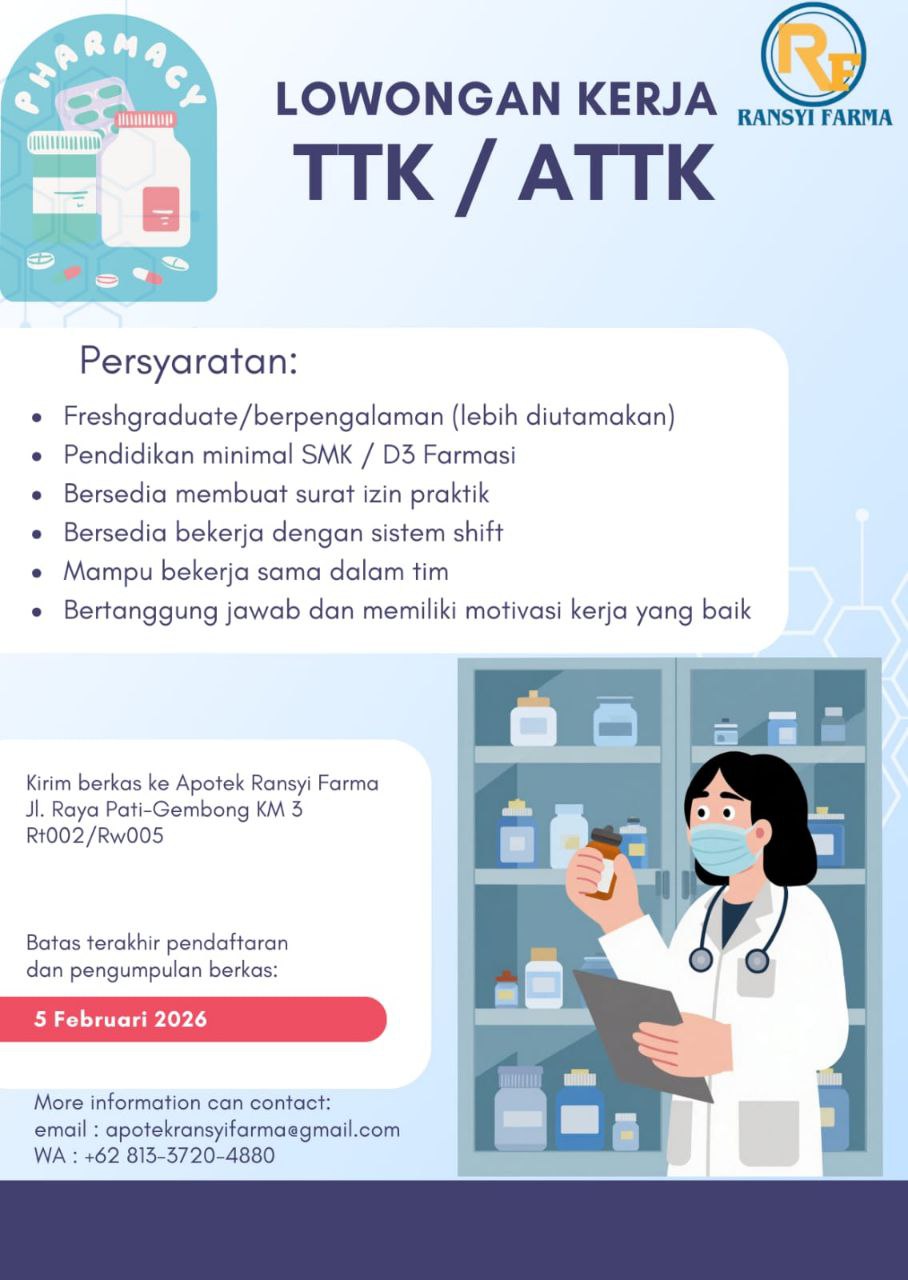 Disclaimer: Farmacare bertindak sebagai platform penyedia informasi dan tidak bertanggung jawab atas isi maupun keakuratan materi lowongan kerja yang dipasang oleh pihak ketiga. Kami mengimbau seluruh pelamar untuk selalu waspada terhadap segala bentuk penipuan yang mengatasnamakan proses rekrutmen. Ingatlah bahwa proses rekrutmen yang resmi tidak pernah memungut biaya apa pun (seperti biaya tiket, akomodasi, atau biaya admin). Selalu lakukan verifikasi mandiri sebelum memberikan data pribadi atau melakukan transaksi.