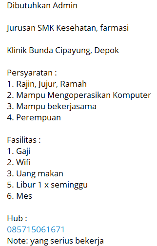 Disclaimer: Farmacare bertindak sebagai platform penyedia informasi dan tidak bertanggung jawab atas isi maupun keakuratan materi lowongan kerja yang dipasang oleh pihak ketiga. Kami mengimbau seluruh pelamar untuk selalu waspada terhadap segala bentuk penipuan yang mengatasnamakan proses rekrutmen. Ingatlah bahwa proses rekrutmen yang resmi tidak pernah memungut biaya apa pun (seperti biaya tiket, akomodasi, atau biaya admin). Selalu lakukan verifikasi mandiri sebelum memberikan data pribadi atau melakukan transaksi.