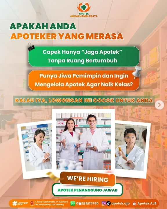 Disclaimer: Farmacare bertindak sebagai platform penyedia informasi dan tidak bertanggung jawab atas isi maupun keakuratan materi lowongan kerja yang dipasang oleh pihak ketiga. Kami mengimbau seluruh pelamar untuk selalu waspada terhadap segala bentuk penipuan yang mengatasnamakan proses rekrutmen. Ingatlah bahwa proses rekrutmen yang resmi tidak pernah memungut biaya apa pun (seperti biaya tiket, akomodasi, atau biaya admin). Selalu lakukan verifikasi mandiri sebelum memberikan data pribadi atau melakukan transaksi.