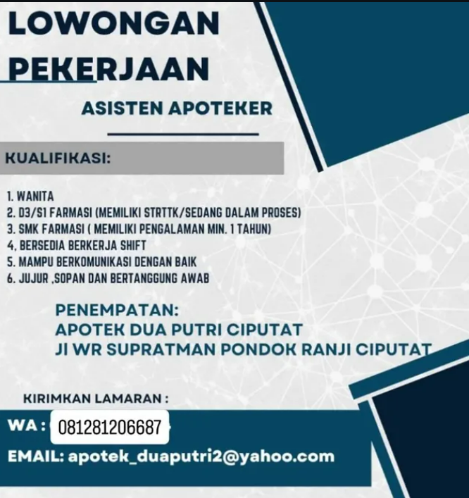 Disclaimer: Farmacare bertindak sebagai platform penyedia informasi dan tidak bertanggung jawab atas isi maupun keakuratan materi lowongan kerja yang dipasang oleh pihak ketiga. Kami mengimbau seluruh pelamar untuk selalu waspada terhadap segala bentuk penipuan yang mengatasnamakan proses rekrutmen. Ingatlah bahwa proses rekrutmen yang resmi tidak pernah memungut biaya apa pun (seperti biaya tiket, akomodasi, atau biaya admin). Selalu lakukan verifikasi mandiri sebelum memberikan data pribadi atau melakukan transaksi.