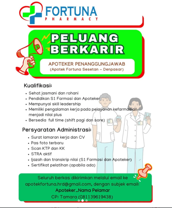 Disclaimer: Farmacare bertindak sebagai platform penyedia informasi dan tidak bertanggung jawab atas isi maupun keakuratan materi lowongan kerja yang dipasang oleh pihak ketiga. Kami mengimbau seluruh pelamar untuk selalu waspada terhadap segala bentuk penipuan yang mengatasnamakan proses rekrutmen. Ingatlah bahwa proses rekrutmen yang resmi tidak pernah memungut biaya apa pun (seperti biaya tiket, akomodasi, atau biaya admin). Selalu lakukan verifikasi mandiri sebelum memberikan data pribadi atau melakukan transaksi.