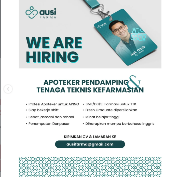 Disclaimer: Farmacare bertindak sebagai platform penyedia informasi dan tidak bertanggung jawab atas isi maupun keakuratan materi lowongan kerja yang dipasang oleh pihak ketiga. Kami mengimbau seluruh pelamar untuk selalu waspada terhadap segala bentuk penipuan yang mengatasnamakan proses rekrutmen. Ingatlah bahwa proses rekrutmen yang resmi tidak pernah memungut biaya apa pun (seperti biaya tiket, akomodasi, atau biaya admin). Selalu lakukan verifikasi mandiri sebelum memberikan data pribadi atau melakukan transaksi.