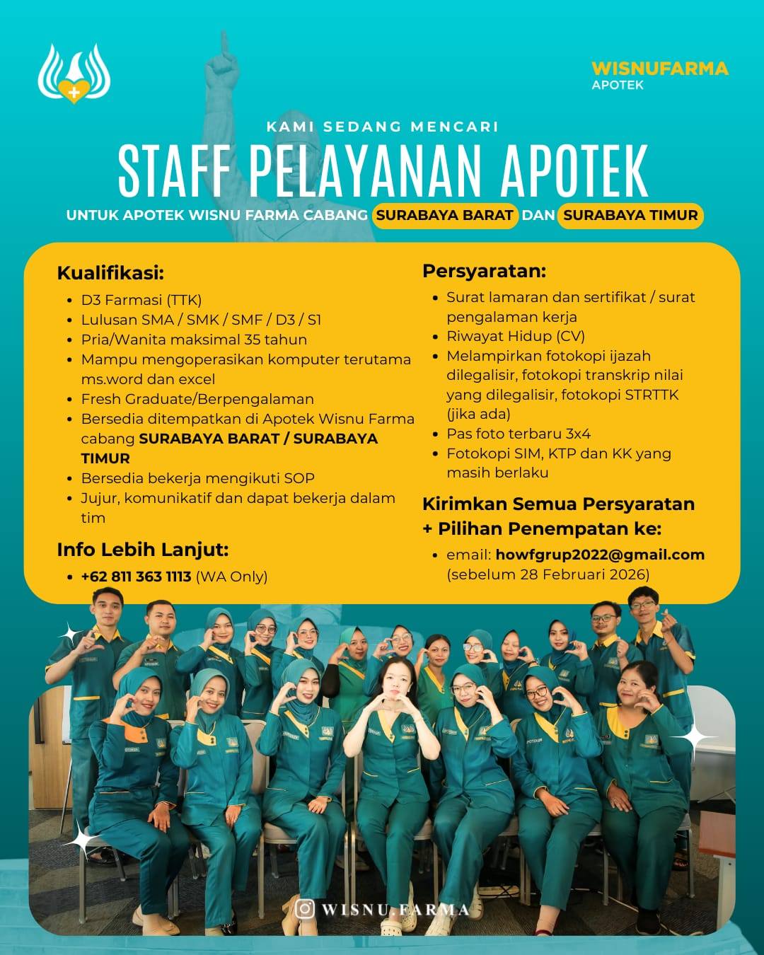 Disclaimer: Farmacare bertindak sebagai platform penyedia informasi dan tidak bertanggung jawab atas isi maupun keakuratan materi lowongan kerja yang dipasang oleh pihak ketiga. Kami mengimbau seluruh pelamar untuk selalu waspada terhadap segala bentuk penipuan yang mengatasnamakan proses rekrutmen. Ingatlah bahwa proses rekrutmen yang resmi tidak pernah memungut biaya apa pun (seperti biaya tiket, akomodasi, atau biaya admin). Selalu lakukan verifikasi mandiri sebelum memberikan data pribadi atau melakukan transaksi.