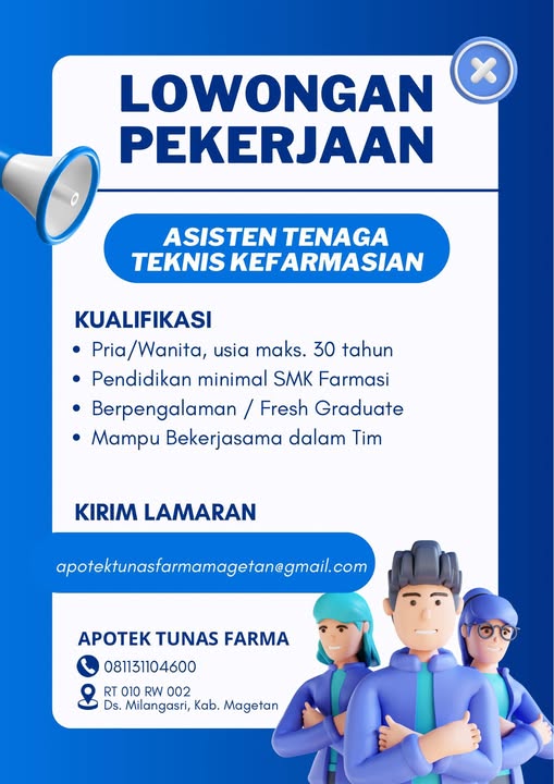 Disclaimer: Farmacare bertindak sebagai platform penyedia informasi dan tidak bertanggung jawab atas isi maupun keakuratan materi lowongan kerja yang dipasang oleh pihak ketiga. Kami mengimbau seluruh pelamar untuk selalu waspada terhadap segala bentuk penipuan yang mengatasnamakan proses rekrutmen. Ingatlah bahwa proses rekrutmen yang resmi tidak pernah memungut biaya apa pun (seperti biaya tiket, akomodasi, atau biaya admin). Selalu lakukan verifikasi mandiri sebelum memberikan data pribadi atau melakukan transaksi.