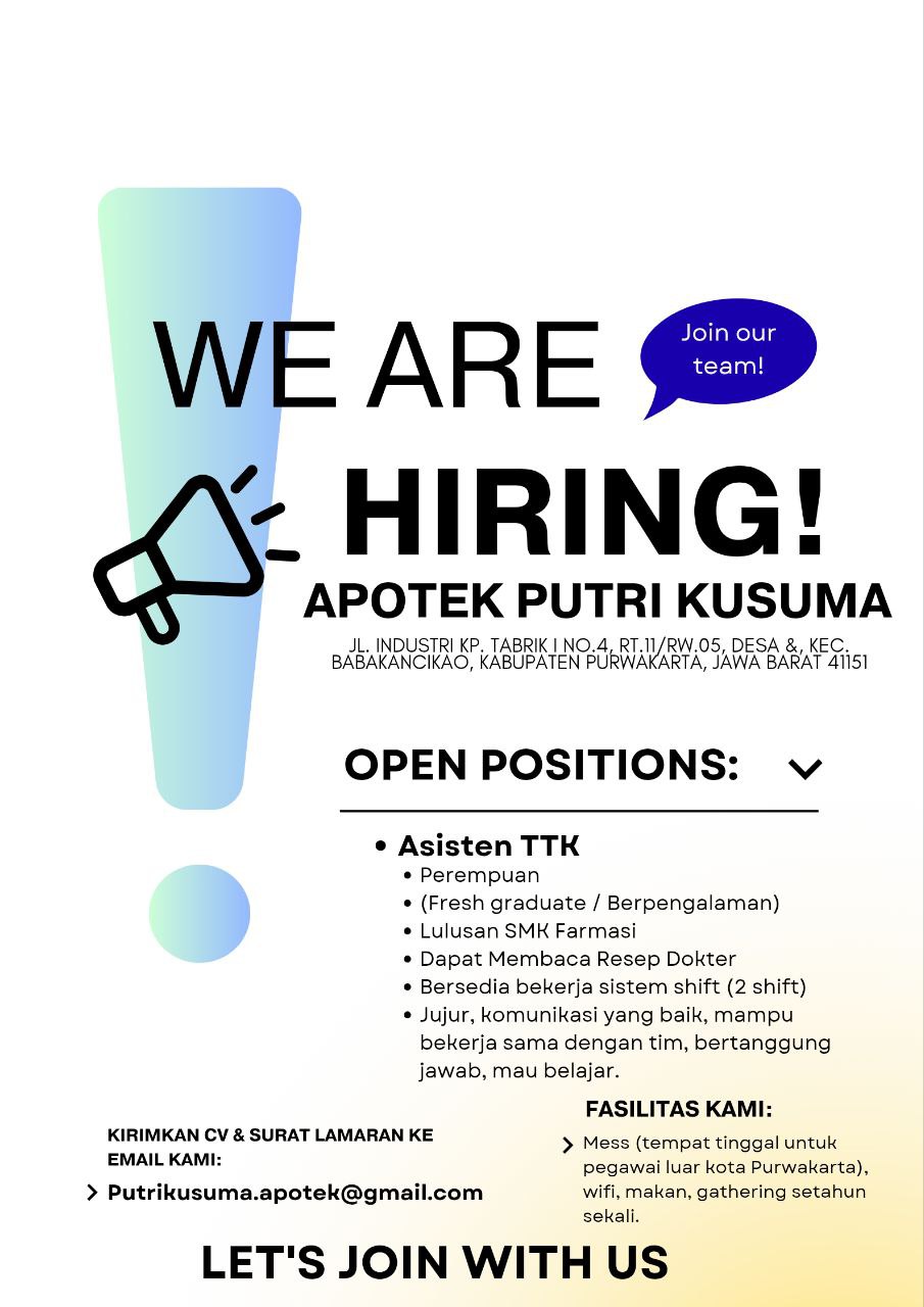 Disclaimer: Farmacare bertindak sebagai platform penyedia informasi dan tidak bertanggung jawab atas isi maupun keakuratan materi lowongan kerja yang dipasang oleh pihak ketiga. Kami mengimbau seluruh pelamar untuk selalu waspada terhadap segala bentuk penipuan yang mengatasnamakan proses rekrutmen. Ingatlah bahwa proses rekrutmen yang resmi tidak pernah memungut biaya apa pun (seperti biaya tiket, akomodasi, atau biaya admin). Selalu lakukan verifikasi mandiri sebelum memberikan data pribadi atau melakukan transaksi.