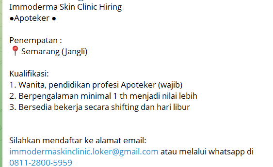 Disclaimer: Farmacare bertindak sebagai platform penyedia informasi dan tidak bertanggung jawab atas isi maupun keakuratan materi lowongan kerja yang dipasang oleh pihak ketiga. Kami mengimbau seluruh pelamar untuk selalu waspada terhadap segala bentuk penipuan yang mengatasnamakan proses rekrutmen. Ingatlah bahwa proses rekrutmen yang resmi tidak pernah memungut biaya apa pun (seperti biaya tiket, akomodasi, atau biaya admin). Selalu lakukan verifikasi mandiri sebelum memberikan data pribadi atau melakukan transaksi.