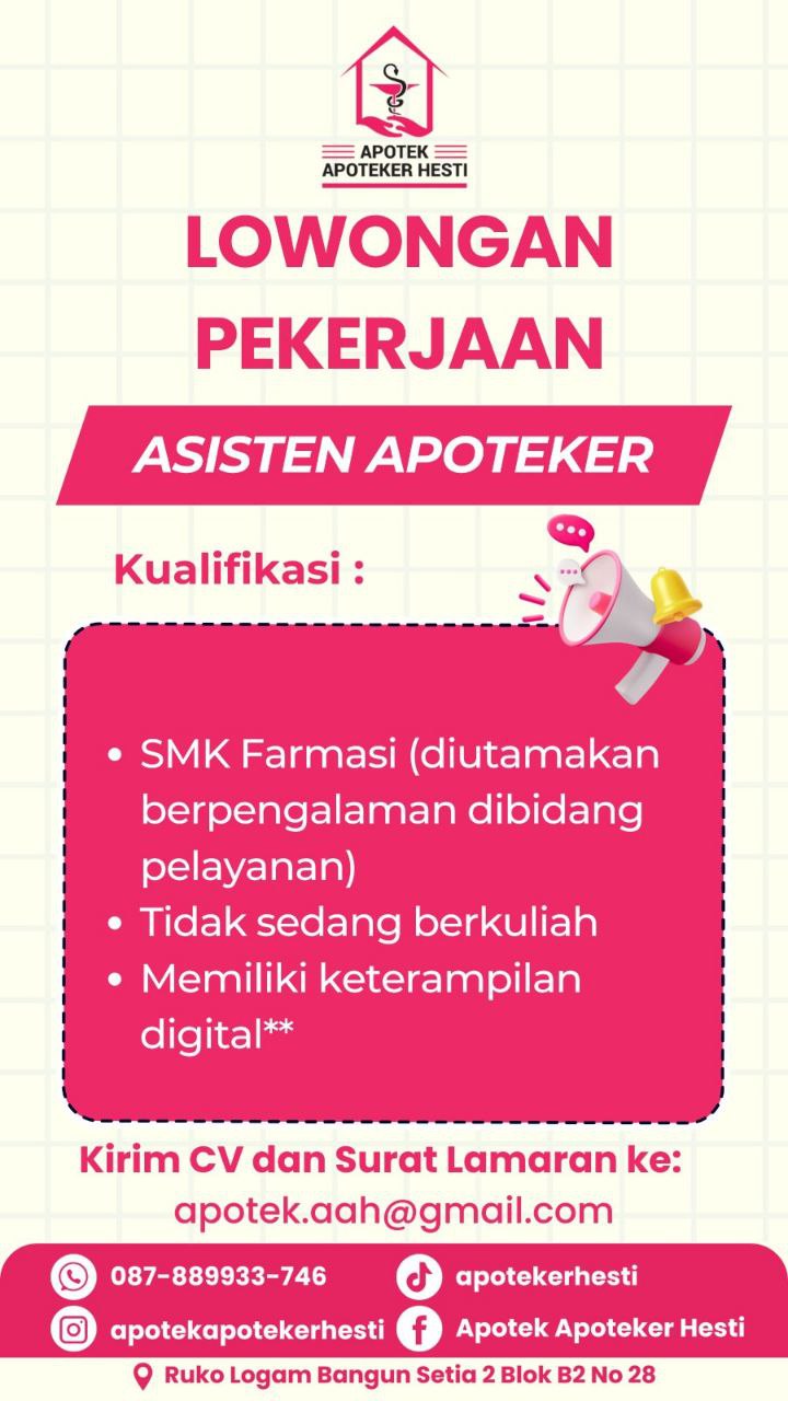 Disclaimer: Farmacare bertindak sebagai platform penyedia informasi dan tidak bertanggung jawab atas isi maupun keakuratan materi lowongan kerja yang dipasang oleh pihak ketiga. Kami mengimbau seluruh pelamar untuk selalu waspada terhadap segala bentuk penipuan yang mengatasnamakan proses rekrutmen. Ingatlah bahwa proses rekrutmen yang resmi tidak pernah memungut biaya apa pun (seperti biaya tiket, akomodasi, atau biaya admin). Selalu lakukan verifikasi mandiri sebelum memberikan data pribadi atau melakukan transaksi.