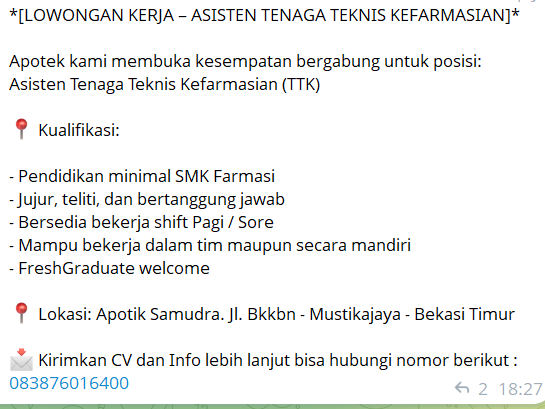 Sertifikat ini membantu pemasang loker melihat bahwa kamu siap kerja dan relevan dengan kebutuhan apotek masa kini.