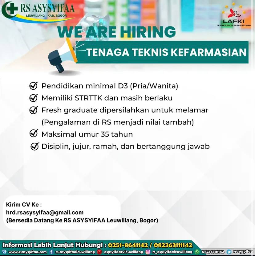 Disclaimer: Farmacare bertindak sebagai platform penyedia informasi dan tidak bertanggung jawab atas isi maupun keakuratan materi lowongan kerja yang dipasang oleh pihak ketiga. Kami mengimbau seluruh pelamar untuk selalu waspada terhadap segala bentuk penipuan yang mengatasnamakan proses rekrutmen. Ingatlah bahwa proses rekrutmen yang resmi tidak pernah memungut biaya apa pun (seperti biaya tiket, akomodasi, atau biaya admin). Selalu lakukan verifikasi mandiri sebelum memberikan data pribadi atau melakukan transaksi.