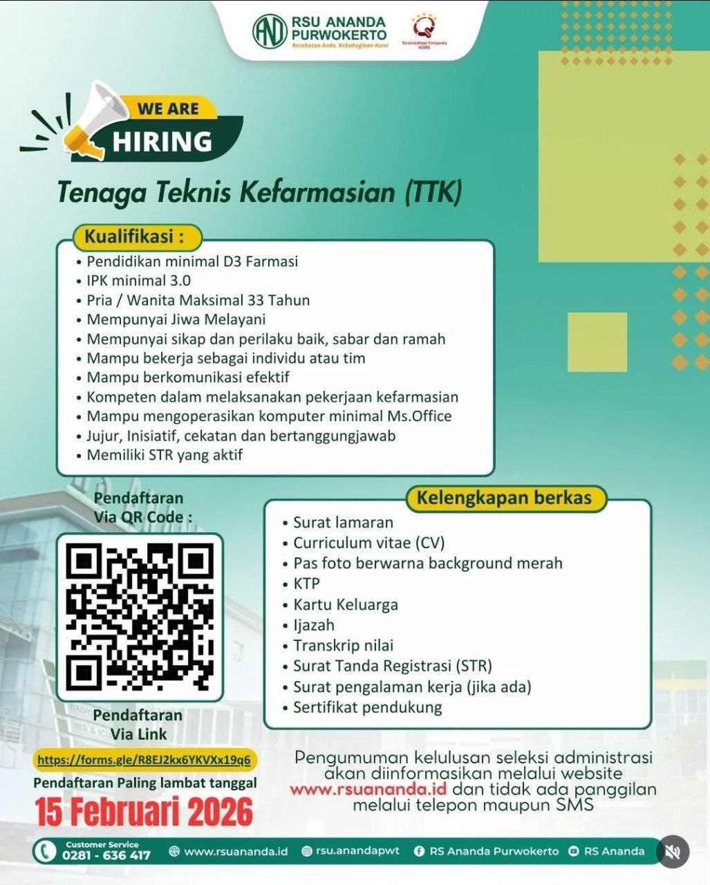 Disclaimer: Farmacare bertindak sebagai platform penyedia informasi dan tidak bertanggung jawab atas isi maupun keakuratan materi lowongan kerja yang dipasang oleh pihak ketiga. Kami mengimbau seluruh pelamar untuk selalu waspada terhadap segala bentuk penipuan yang mengatasnamakan proses rekrutmen. Ingatlah bahwa proses rekrutmen yang resmi tidak pernah memungut biaya apa pun (seperti biaya tiket, akomodasi, atau biaya admin). Selalu lakukan verifikasi mandiri sebelum memberikan data pribadi atau melakukan transaksi.