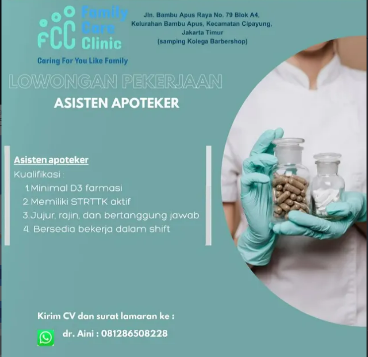 Disclaimer: Farmacare bertindak sebagai platform penyedia informasi dan tidak bertanggung jawab atas isi maupun keakuratan materi lowongan kerja yang dipasang oleh pihak ketiga. Kami mengimbau seluruh pelamar untuk selalu waspada terhadap segala bentuk penipuan yang mengatasnamakan proses rekrutmen. Ingatlah bahwa proses rekrutmen yang resmi tidak pernah memungut biaya apa pun (seperti biaya tiket, akomodasi, atau biaya admin). Selalu lakukan verifikasi mandiri sebelum memberikan data pribadi atau melakukan transaksi.
