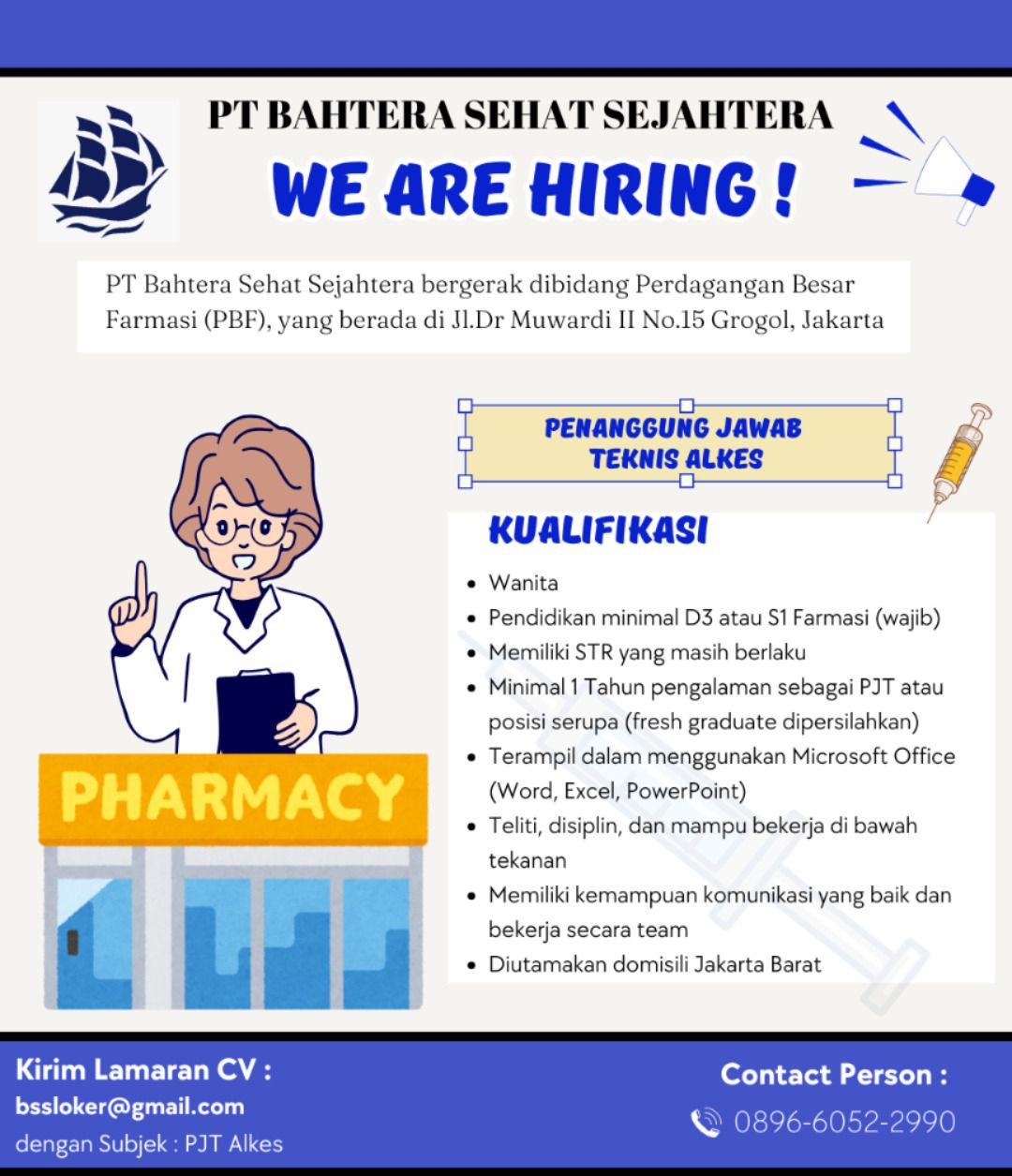 Disclaimer: Farmacare bertindak sebagai platform penyedia informasi dan tidak bertanggung jawab atas isi maupun keakuratan materi lowongan kerja yang dipasang oleh pihak ketiga. Kami mengimbau seluruh pelamar untuk selalu waspada terhadap segala bentuk penipuan yang mengatasnamakan proses rekrutmen. Ingatlah bahwa proses rekrutmen yang resmi tidak pernah memungut biaya apa pun (seperti biaya tiket, akomodasi, atau biaya admin). Selalu lakukan verifikasi mandiri sebelum memberikan data pribadi atau melakukan transaksi.