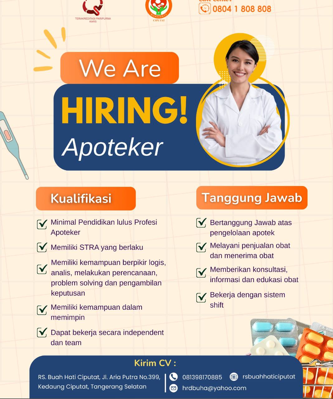 Disclaimer: Farmacare bertindak sebagai platform penyedia informasi dan tidak bertanggung jawab atas isi maupun keakuratan materi lowongan kerja yang dipasang oleh pihak ketiga. Kami mengimbau seluruh pelamar untuk selalu waspada terhadap segala bentuk penipuan yang mengatasnamakan proses rekrutmen. Ingatlah bahwa proses rekrutmen yang resmi tidak pernah memungut biaya apa pun (seperti biaya tiket, akomodasi, atau biaya admin). Selalu lakukan verifikasi mandiri sebelum memberikan data pribadi atau melakukan transaksi.