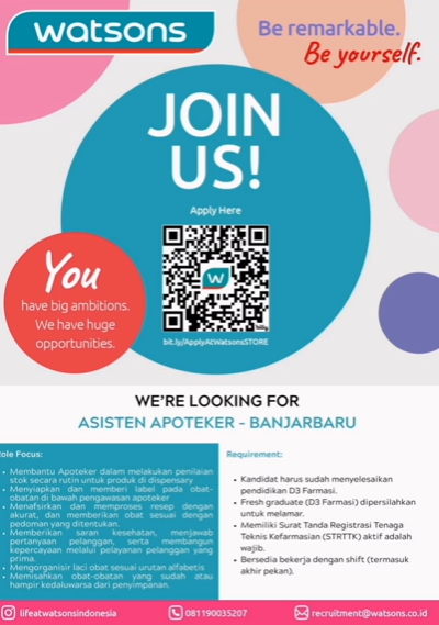 Disclaimer: Farmacare bertindak sebagai platform penyedia informasi dan tidak bertanggung jawab atas isi maupun keakuratan materi lowongan kerja yang dipasang oleh pihak ketiga. Kami mengimbau seluruh pelamar untuk selalu waspada terhadap segala bentuk penipuan yang mengatasnamakan proses rekrutmen. Ingatlah bahwa proses rekrutmen yang resmi tidak pernah memungut biaya apa pun (seperti biaya tiket, akomodasi, atau biaya admin). Selalu lakukan verifikasi mandiri sebelum memberikan data pribadi atau melakukan transaksi.