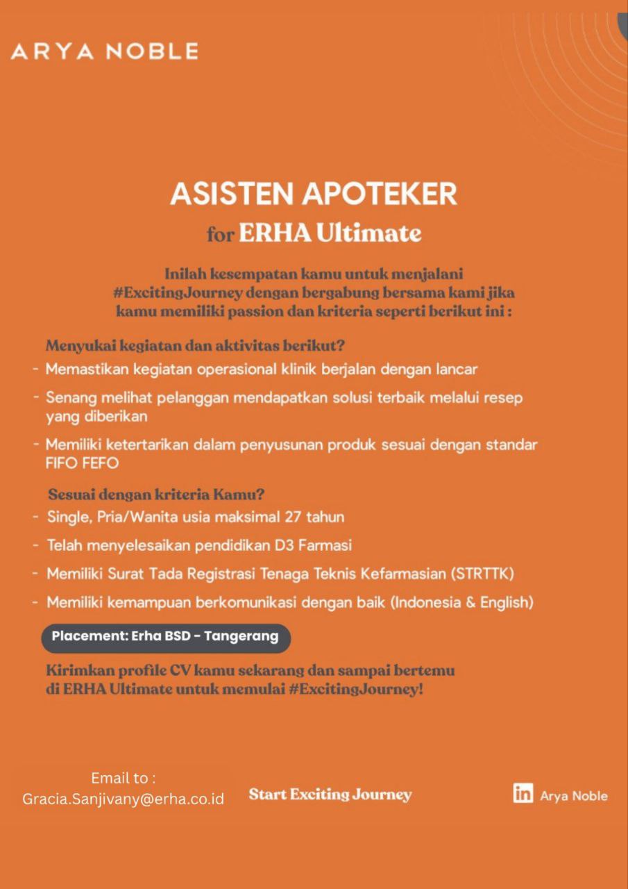Disclaimer: Farmacare bertindak sebagai platform penyedia informasi dan tidak bertanggung jawab atas isi maupun keakuratan materi lowongan kerja yang dipasang oleh pihak ketiga. Kami mengimbau seluruh pelamar untuk selalu waspada terhadap segala bentuk penipuan yang mengatasnamakan proses rekrutmen. Ingatlah bahwa proses rekrutmen yang resmi tidak pernah memungut biaya apa pun (seperti biaya tiket, akomodasi, atau biaya admin). Selalu lakukan verifikasi mandiri sebelum memberikan data pribadi atau melakukan transaksi.