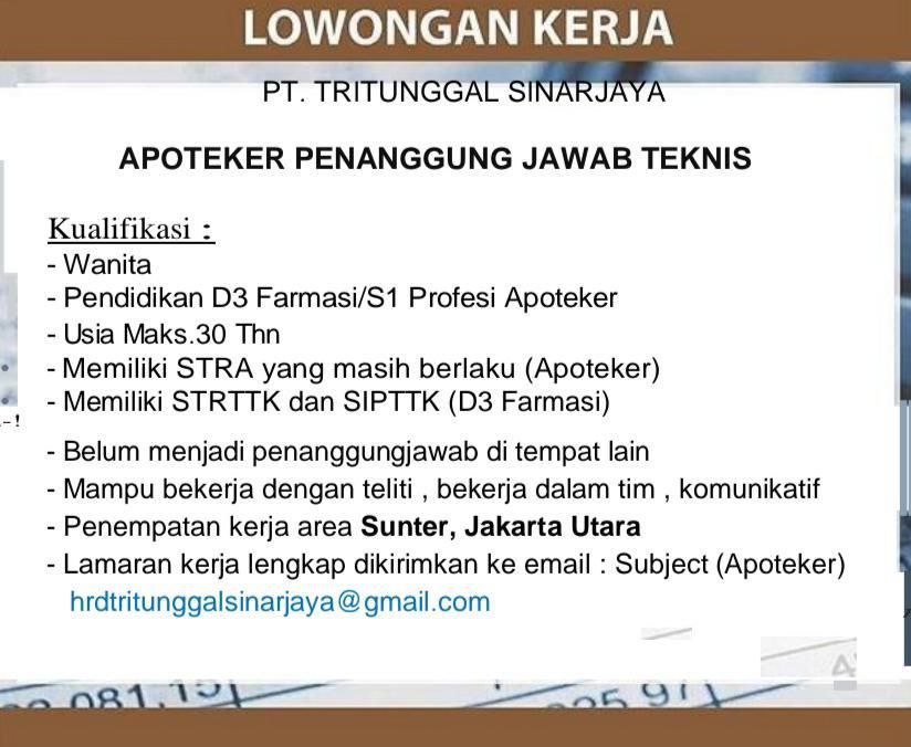 Disclaimer: Farmacare bertindak sebagai platform penyedia informasi dan tidak bertanggung jawab atas isi maupun keakuratan materi lowongan kerja yang dipasang oleh pihak ketiga. Kami mengimbau seluruh pelamar untuk selalu waspada terhadap segala bentuk penipuan yang mengatasnamakan proses rekrutmen. Ingatlah bahwa proses rekrutmen yang resmi tidak pernah memungut biaya apa pun (seperti biaya tiket, akomodasi, atau biaya admin). Selalu lakukan verifikasi mandiri sebelum memberikan data pribadi atau melakukan transaksi.