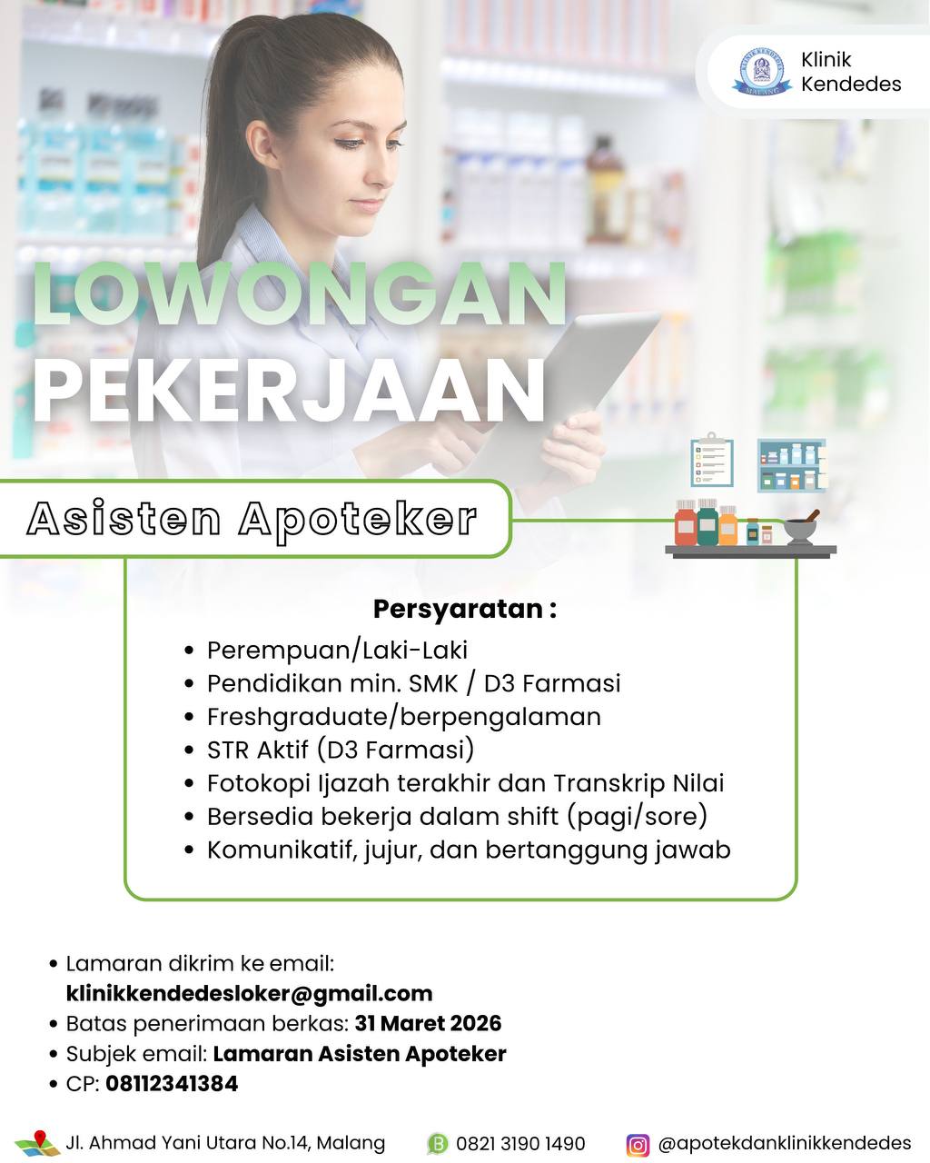Disclaimer: Farmacare bertindak sebagai platform penyedia informasi dan tidak bertanggung jawab atas isi maupun keakuratan materi lowongan kerja yang dipasang oleh pihak ketiga. Kami mengimbau seluruh pelamar untuk selalu waspada terhadap segala bentuk penipuan yang mengatasnamakan proses rekrutmen. Ingatlah bahwa proses rekrutmen yang resmi tidak pernah memungut biaya apa pun (seperti biaya tiket, akomodasi, atau biaya admin). Selalu lakukan verifikasi mandiri sebelum memberikan data pribadi atau melakukan transaksi.