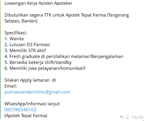 Disclaimer: Farmacare bertindak sebagai platform penyedia informasi dan tidak bertanggung jawab atas isi maupun keakuratan materi lowongan kerja yang dipasang oleh pihak ketiga. Kami mengimbau seluruh pelamar untuk selalu waspada terhadap segala bentuk penipuan yang mengatasnamakan proses rekrutmen. Ingatlah bahwa proses rekrutmen yang resmi tidak pernah memungut biaya apa pun (seperti biaya tiket, akomodasi, atau biaya admin). Selalu lakukan verifikasi mandiri sebelum memberikan data pribadi atau melakukan transaksi.