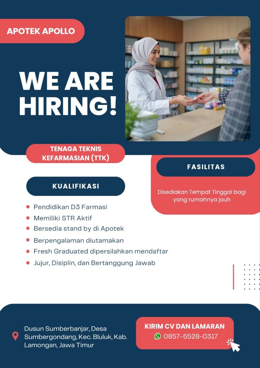 Disclaimer: Farmacare bertindak sebagai platform penyedia informasi dan tidak bertanggung jawab atas isi maupun keakuratan materi lowongan kerja yang dipasang oleh pihak ketiga. Kami mengimbau seluruh pelamar untuk selalu waspada terhadap segala bentuk penipuan yang mengatasnamakan proses rekrutmen. Ingatlah bahwa proses rekrutmen yang resmi tidak pernah memungut biaya apa pun (seperti biaya tiket, akomodasi, atau biaya admin). Selalu lakukan verifikasi mandiri sebelum memberikan data pribadi atau melakukan transaksi.