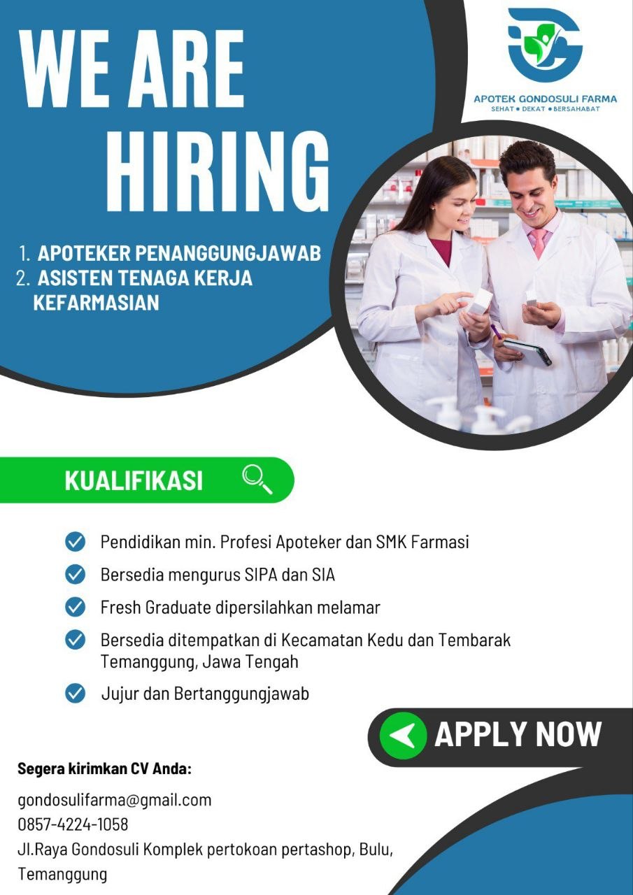 Disclaimer: Farmacare bertindak sebagai platform penyedia informasi dan tidak bertanggung jawab atas isi maupun keakuratan materi lowongan kerja yang dipasang oleh pihak ketiga. Kami mengimbau seluruh pelamar untuk selalu waspada terhadap segala bentuk penipuan yang mengatasnamakan proses rekrutmen. Ingatlah bahwa proses rekrutmen yang resmi tidak pernah memungut biaya apa pun (seperti biaya tiket, akomodasi, atau biaya admin). Selalu lakukan verifikasi mandiri sebelum memberikan data pribadi atau melakukan transaksi.