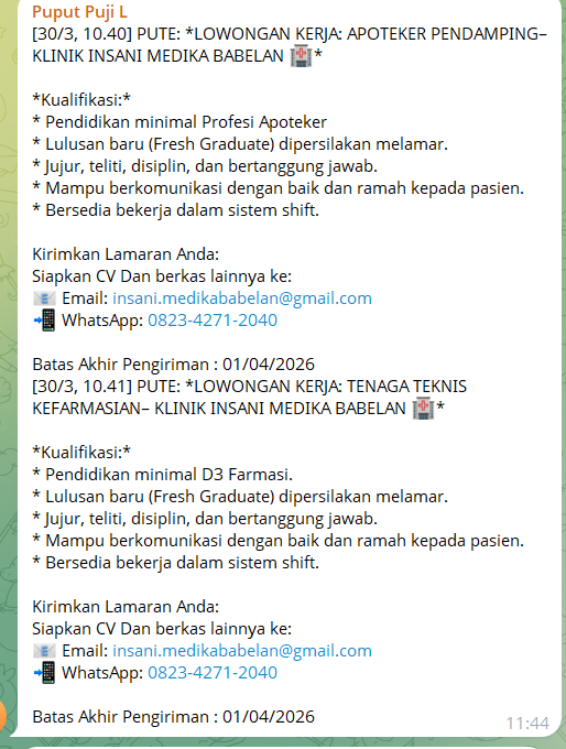 Disclaimer: Farmacare bertindak sebagai platform penyedia informasi dan tidak bertanggung jawab atas isi maupun keakuratan materi lowongan kerja yang dipasang oleh pihak ketiga. Kami mengimbau seluruh pelamar untuk selalu waspada terhadap segala bentuk penipuan yang mengatasnamakan proses rekrutmen. Ingatlah bahwa proses rekrutmen yang resmi tidak pernah memungut biaya apa pun (seperti biaya tiket, akomodasi, atau biaya admin). Selalu lakukan verifikasi mandiri sebelum memberikan data pribadi atau melakukan transaksi.