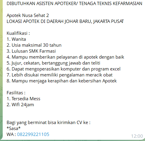 Disclaimer: Farmacare bertindak sebagai platform penyedia informasi dan tidak bertanggung jawab atas isi maupun keakuratan materi lowongan kerja yang dipasang oleh pihak ketiga. Kami mengimbau seluruh pelamar untuk selalu waspada terhadap segala bentuk penipuan yang mengatasnamakan proses rekrutmen. Ingatlah bahwa proses rekrutmen yang resmi tidak pernah memungut biaya apa pun (seperti biaya tiket, akomodasi, atau biaya admin). Selalu lakukan verifikasi mandiri sebelum memberikan data pribadi atau melakukan transaksi.