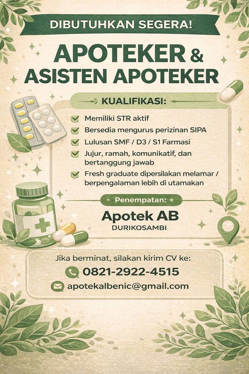 Sertifikat ini membantu pemasang loker melihat bahwa kamu siap kerja dan relevan dengan kebutuhan apotek masa kini.