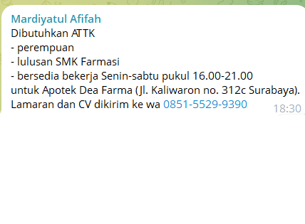 Disclaimer: Farmacare bertindak sebagai platform penyedia informasi dan tidak bertanggung jawab atas isi maupun keakuratan materi lowongan kerja yang dipasang oleh pihak ketiga. Kami mengimbau seluruh pelamar untuk selalu waspada terhadap segala bentuk penipuan yang mengatasnamakan proses rekrutmen. Ingatlah bahwa proses rekrutmen yang resmi tidak pernah memungut biaya apa pun (seperti biaya tiket, akomodasi, atau biaya admin). Selalu lakukan verifikasi mandiri sebelum memberikan data pribadi atau melakukan transaksi.