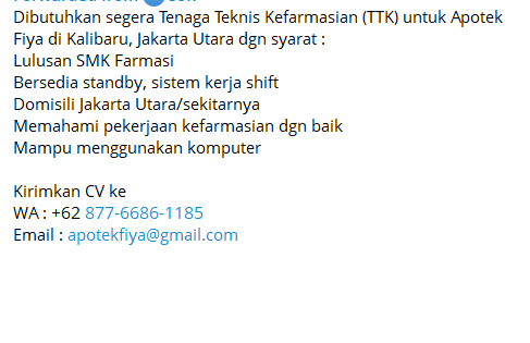 Disclaimer: Farmacare bertindak sebagai platform penyedia informasi dan tidak bertanggung jawab atas isi maupun keakuratan materi lowongan kerja yang dipasang oleh pihak ketiga. Kami mengimbau seluruh pelamar untuk selalu waspada terhadap segala bentuk penipuan yang mengatasnamakan proses rekrutmen. Ingatlah bahwa proses rekrutmen yang resmi tidak pernah memungut biaya apa pun (seperti biaya tiket, akomodasi, atau biaya admin). Selalu lakukan verifikasi mandiri sebelum memberikan data pribadi atau melakukan transaksi.