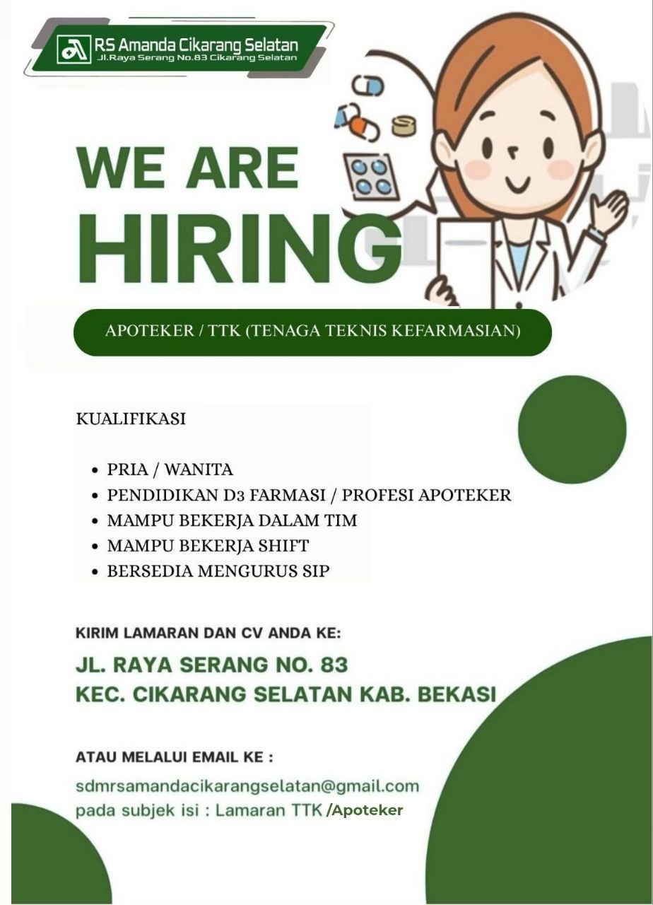Disclaimer: Farmacare bertindak sebagai platform penyedia informasi dan tidak bertanggung jawab atas isi maupun keakuratan materi lowongan kerja yang dipasang oleh pihak ketiga. Kami mengimbau seluruh pelamar untuk selalu waspada terhadap segala bentuk penipuan yang mengatasnamakan proses rekrutmen. Ingatlah bahwa proses rekrutmen yang resmi tidak pernah memungut biaya apa pun (seperti biaya tiket, akomodasi, atau biaya admin). Selalu lakukan verifikasi mandiri sebelum memberikan data pribadi atau melakukan transaksi.